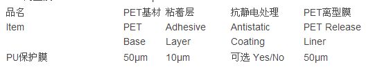 PET基材 PET base(50μm)抗靜電處理(可選) Antistatic coating