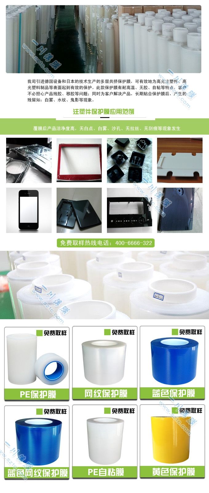 塑膠后蓋高溫保護,高光注塑件,塑料板材面材保護膜,塑膠盒保護膜我司引進德國設(shè)備和日本的技術(shù)生產(chǎn)的多層共擠保護膜,可有效地為高光注塑件、高光塑料制品等表面起到有效的保護。此款保護膜有耐高溫、無膠、自粘等特點,客戶不必?fù)?dān)心產(chǎn)品殘膠、移膠等問題;同時為客戶解決,產(chǎn)品長期貼合保護膜后,產(chǎn)生的殘留如:白霧、水紋、鬼影等現(xiàn)象。